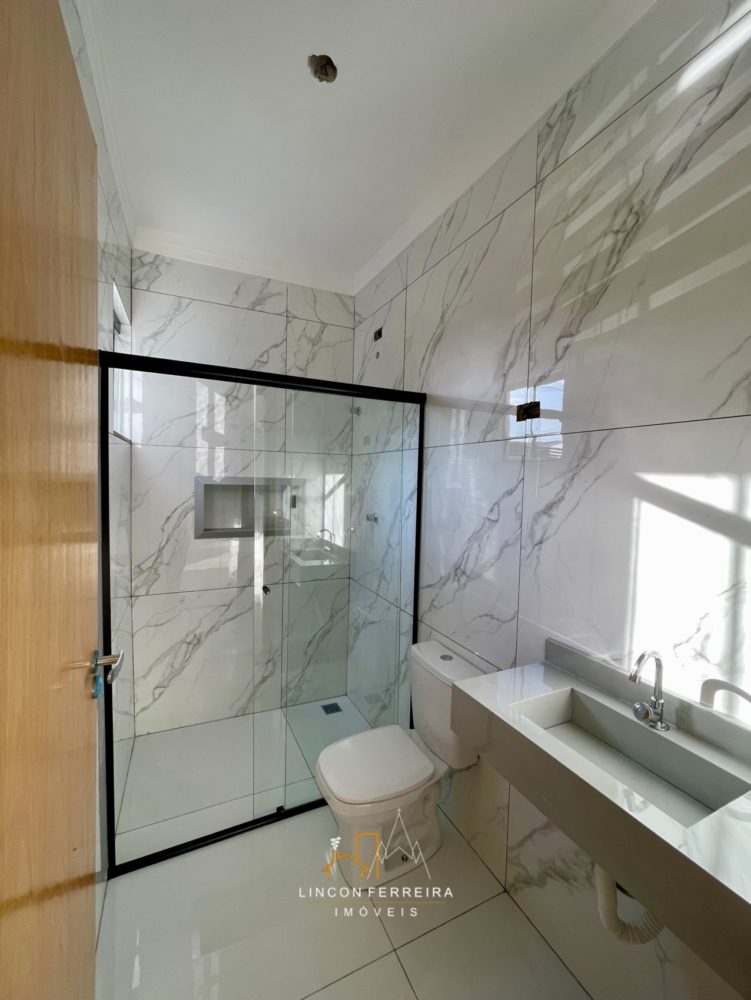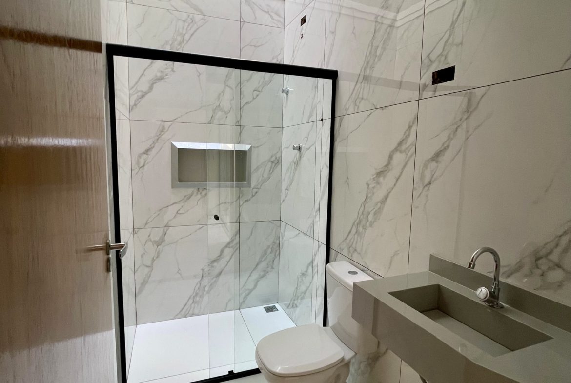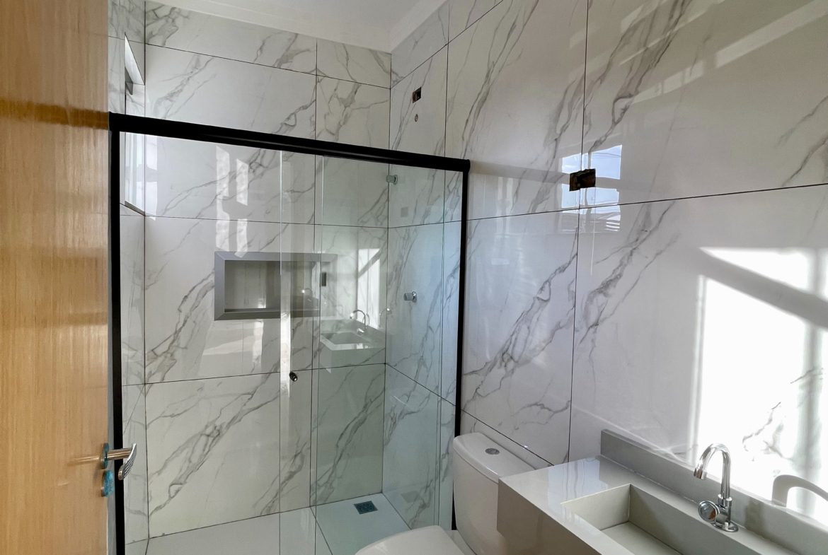 ✅ 02 Banheiros Social / Suíte com Pia de Porcelanato Esculpido, Box e Nicho 🛀